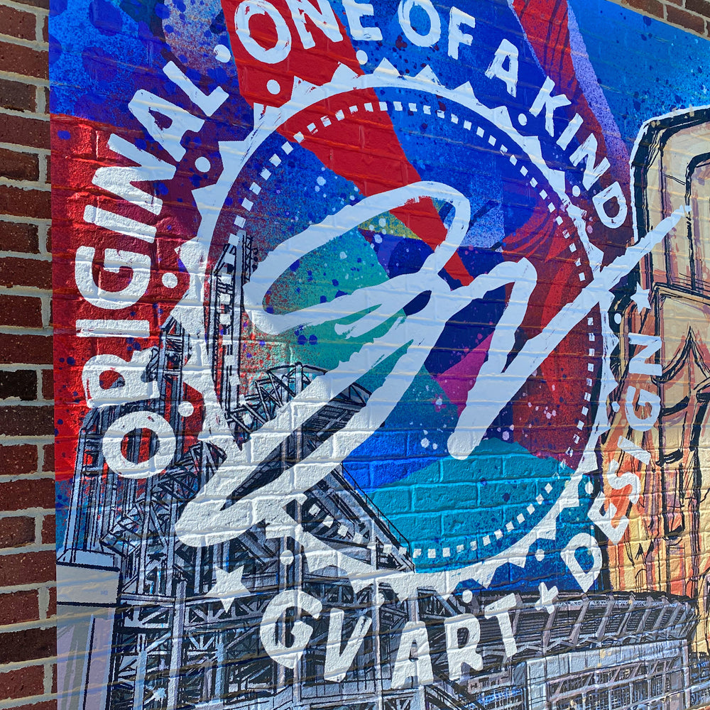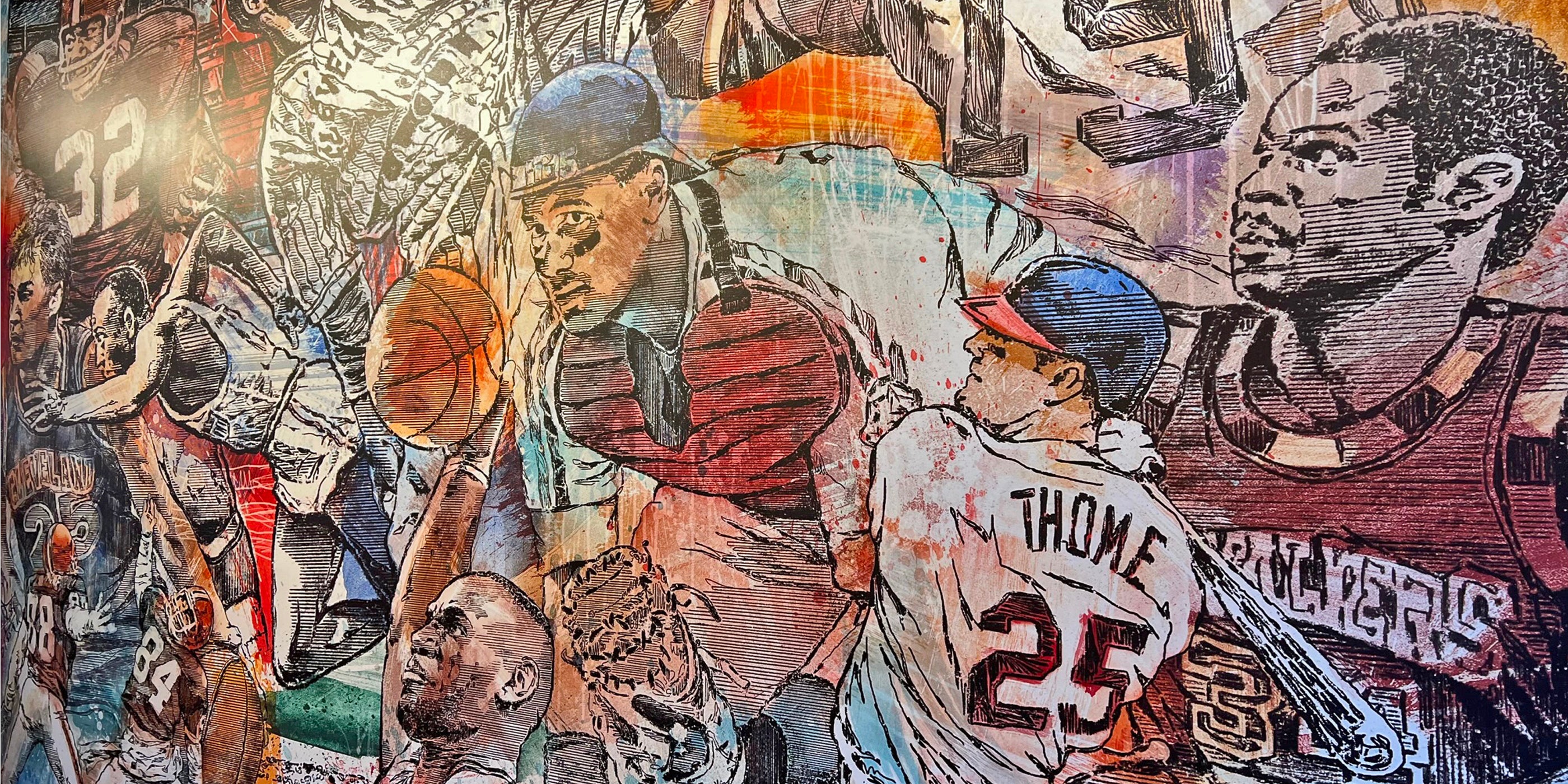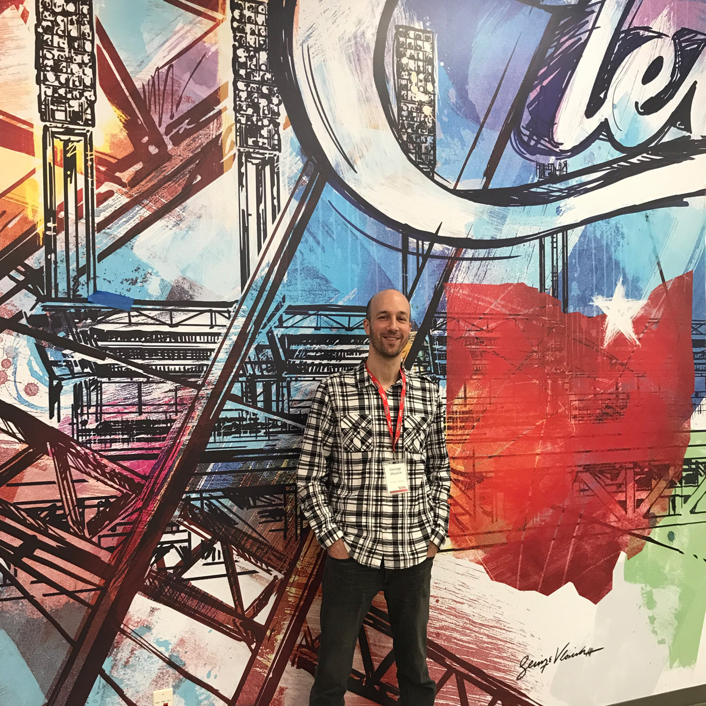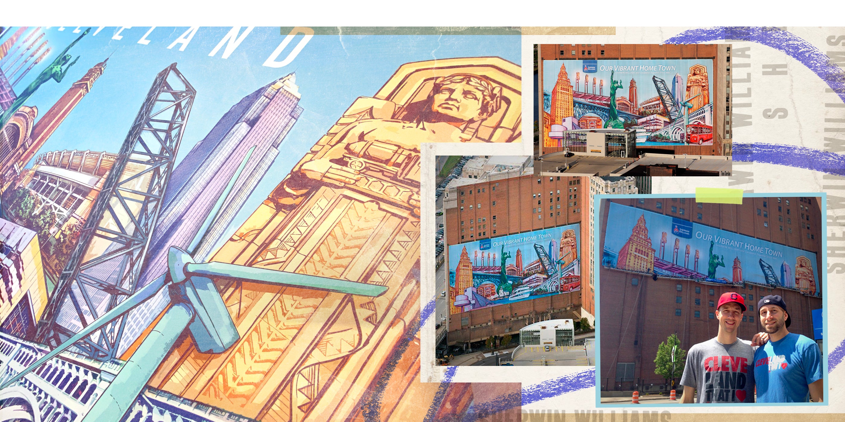 George was commissioned by Sherwin Williams to create a piece of artwork that was made into a billboard showcasing Cleveland landmarks. It was the 5th largest billboard in the country, right in the heart of downtown Cleveland. The famous Nike LeBron billboard once hung in this same spot.