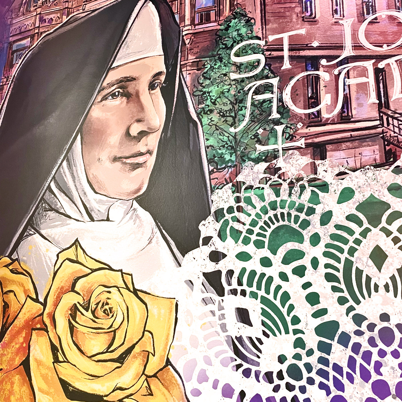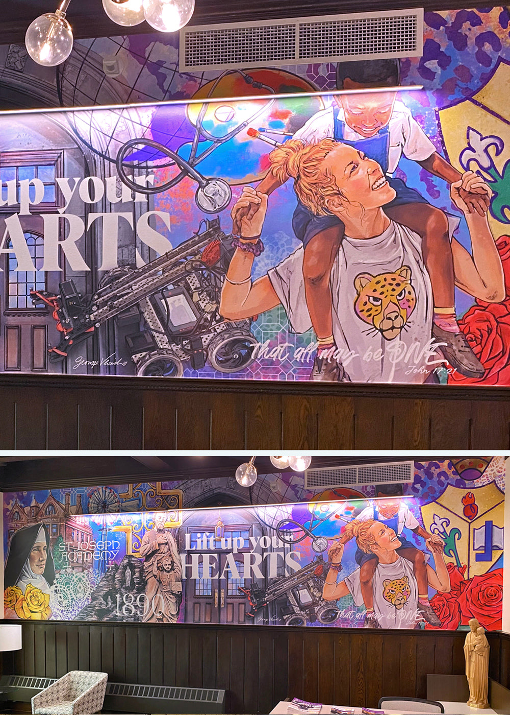 George was asked to create a mural for St. Joseph Academy in Cleveland to highlight the school's history in their newly remodeled Fitzmaurice Hall.