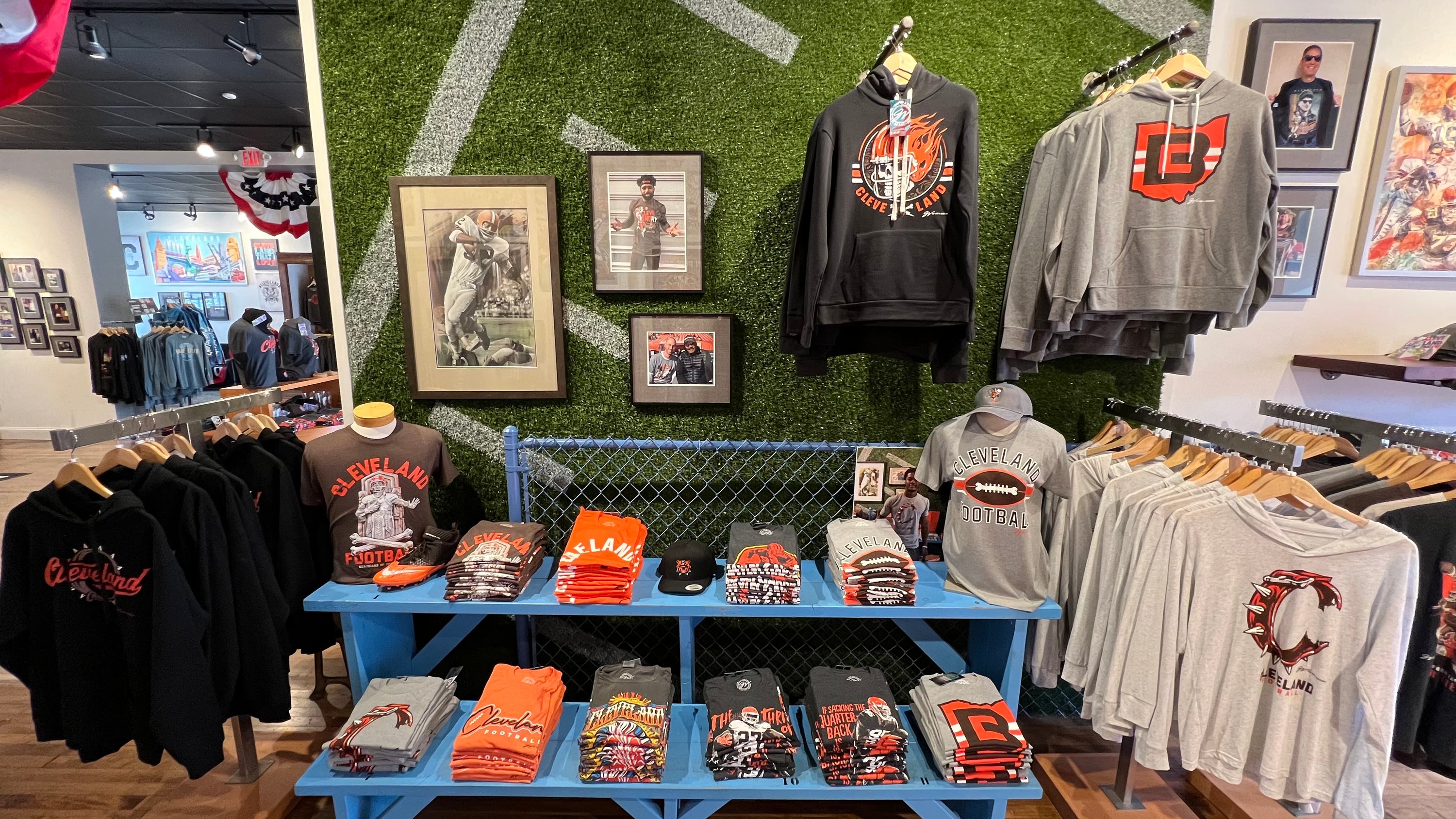 GV Art + Design's creative boutique is not just a place to shop for the hottest new apparel, but a one-of-a-kind studio and art gallery as well. It showcases their world famous artwork, designs, and includes a bit of Cleveland nostalgia and memorabilia. The GV studio has become more than just a store, it has become a destination. Known as a consistent visiting spot for news stations and Cleveland's top Athletes and Celebrities.